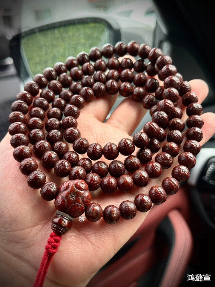 凤眼菩提以其变色飞快而深受玩家喜爱,短短数月即可呈现红润色泽。但正因其变色敏感,更需谨慎对待。玩家隔绝汗液油脂的盘玩下,凤眼菩提会经历由黄转红、由红转深红,最终趋于枣红或紫红的渐进过程,色泽温润且富有层次。
