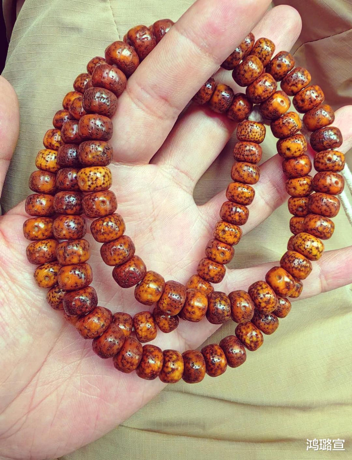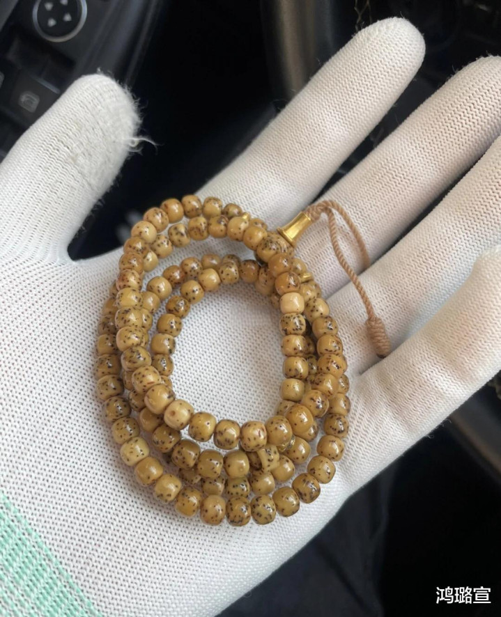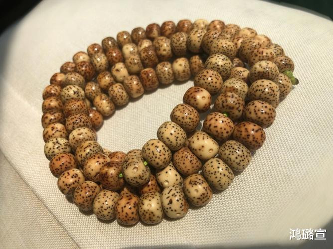 星月菩提是文玩圈中公认的“娇贵”品类,其表面布满星点,结构疏松,极易因受潮、暴晒或盘玩不均而出现色差,即所谓“盘花”。正常盘玩应遵循“干盘为主,汗盘为辅”的原则,初期以净手多盘、少汗慢养,待包浆初步形成后再适度佩戴,方能实现均匀上色。